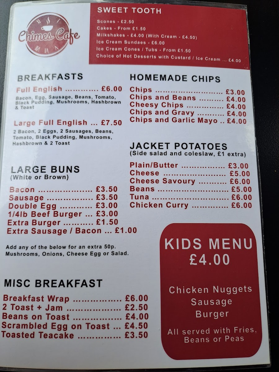 Welcome to Chimes Café, a delightful eatery nestled in Peterlee's bus station at 20 Yoden Way. Renowned for its homely vibe and affordability, this café serves an impressive menu that caters to all tastes.
